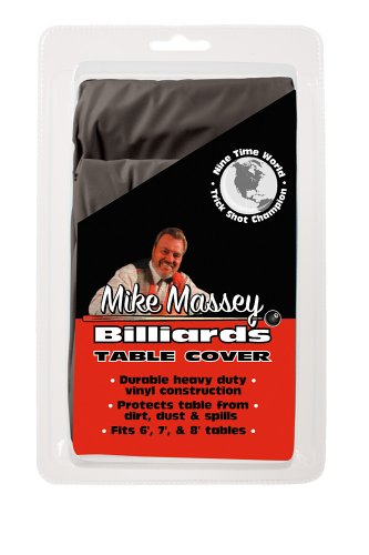 The Mike Massey Billiards Vinyl Table Cover helps you to protect your billiards table from accidental spills, dirt and dust. This durable cover is made from heavy duty vinyl and fits seven-foot, eight-foot, and nine-foot tables.